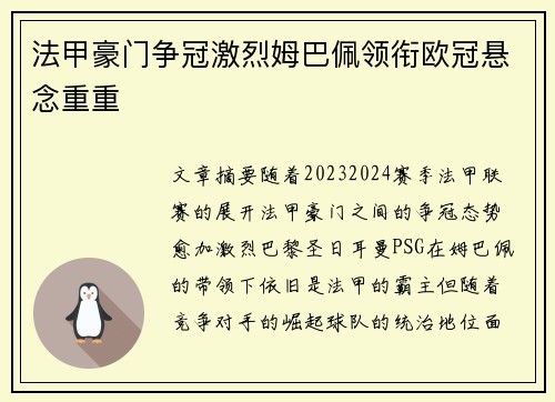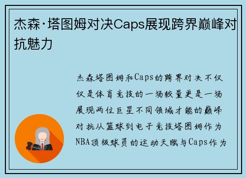 这篇文章将围绕“欧洲中单领袖杰森·塔图姆与Caps激情对决”这一话题展开详细探讨。文章首先对两位顶级中单选手的背景及其在职业生涯中的表现进行介绍,接着深入分析他们在对决中的各项关键技术与战术对比,涵盖双方的个人特点、对比赛的掌控力、战术执行力以及心理博弈等方面。此外,文章还会探讨这场对决对欧洲赛区以...